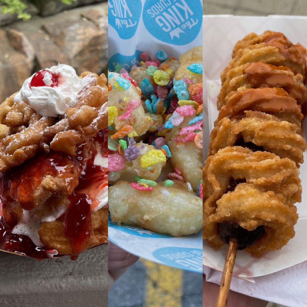 Things I ate at the CNE in 2023. Including Funnel Cake Chicken Sandwich and Thanksgiving Dinner On Top Of Fries.