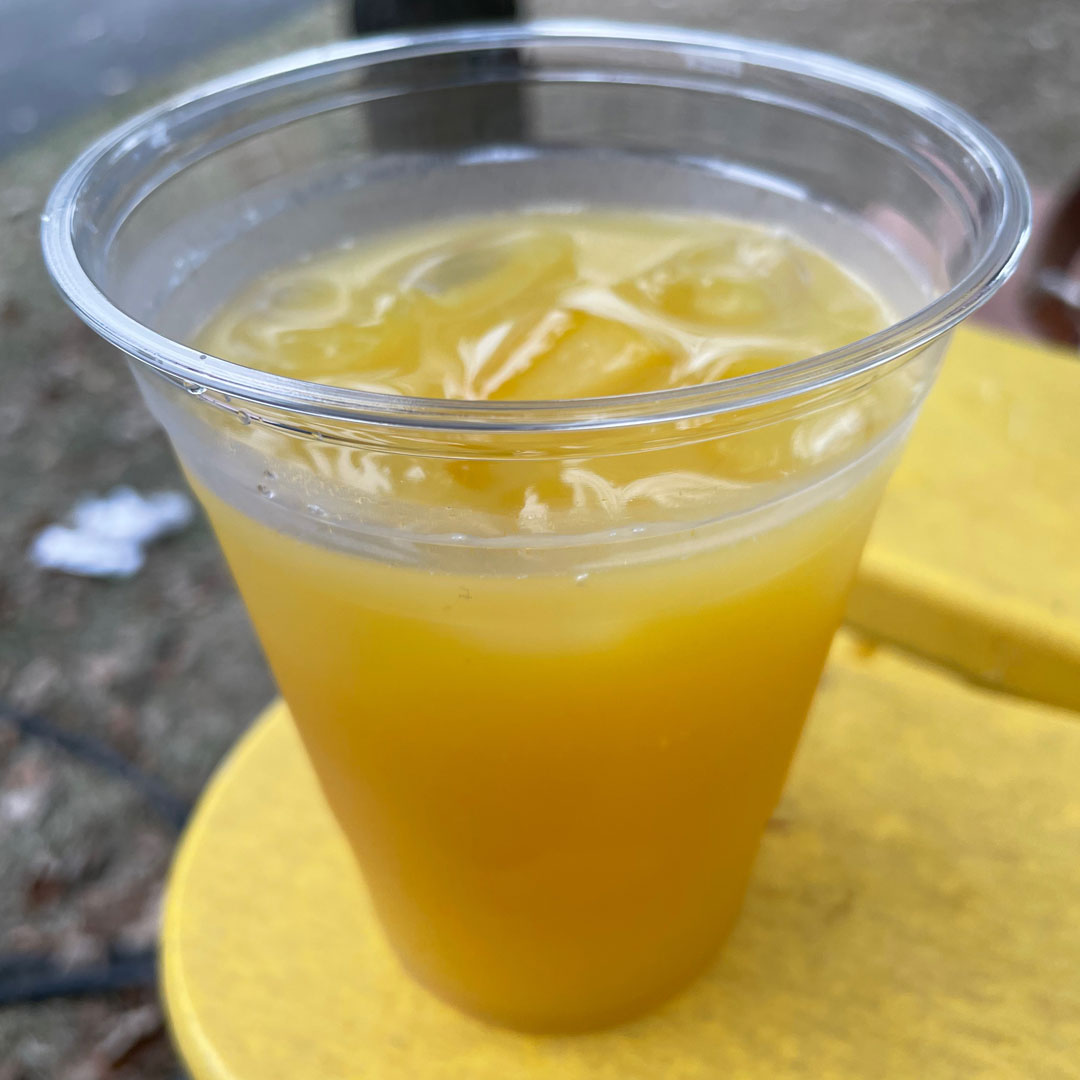 The first couple times we tried the Fuwa Fuwa booth at the C.N.E. were a revelation. The pastries were wonderful, the fresh drink offerings were good and unique. Unfortunately, the thrill is starting to wear off. Getting a mixed cocktail of a soft drink served in a plastic bag has lost its novelty. And after I saw a teenage server pouring Sprite into my bag as the secret bam up ingredient, so has some of the magic. Still ok, though.