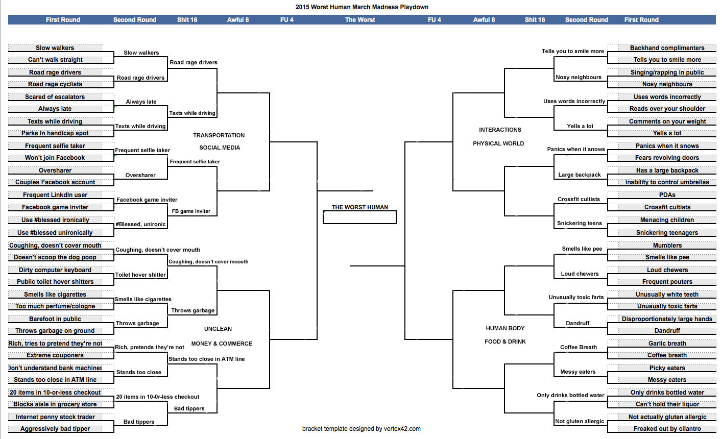 Click the image directly below to see the full Worst Human bracket results.