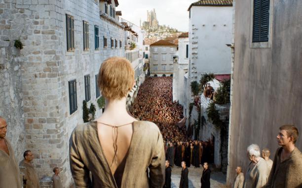 Oh my goodness, yes. Yes. Because there was all kinds of really good stuff leading up to that for two whole seasons. Good stuff. Not some bell-ringing bitch yelling “SHAME” while some crop-haired woman stumbles through miles and miles of sidewalk or whatever you called it back in the day. AND why were those people throwing away their vegetables?