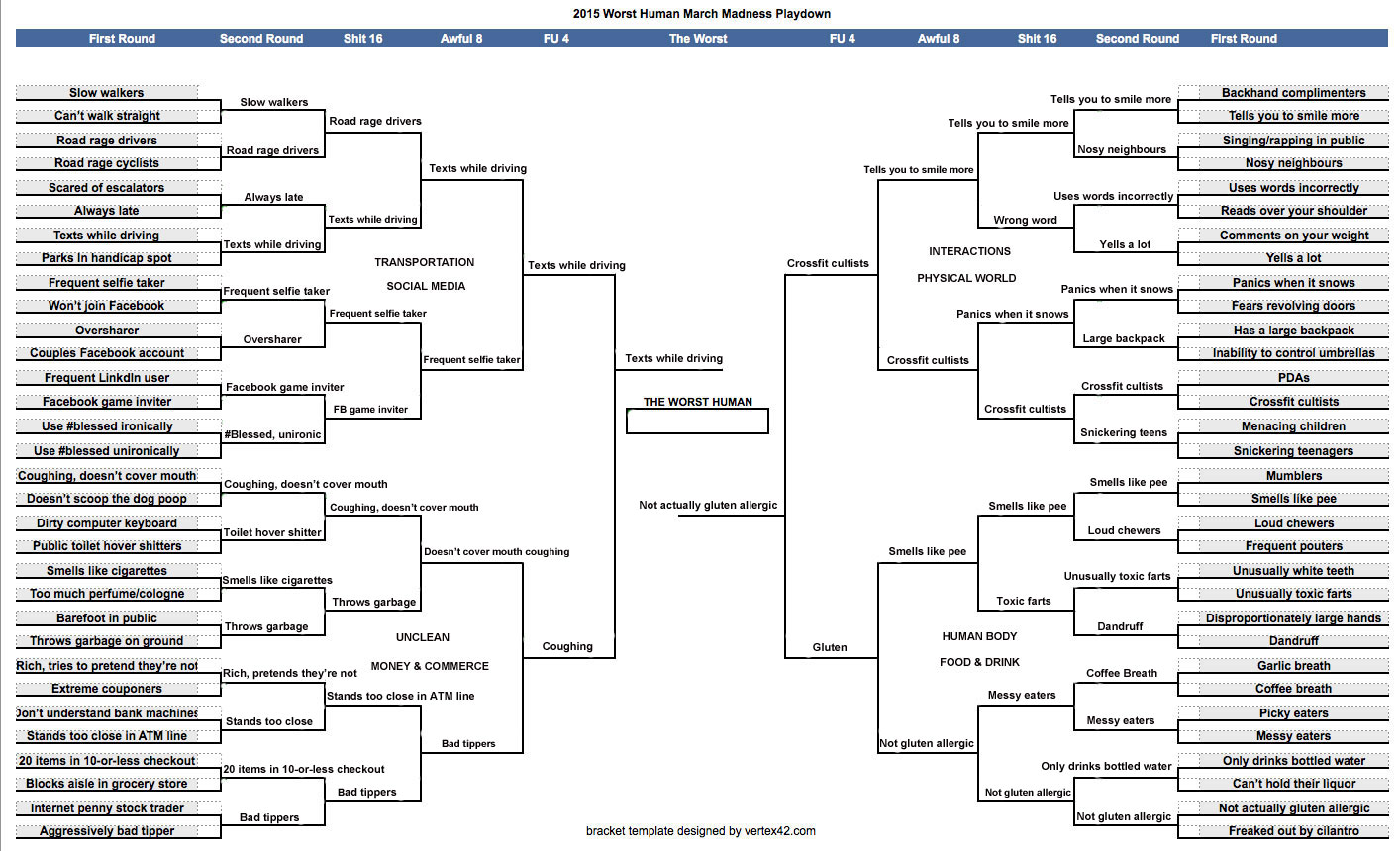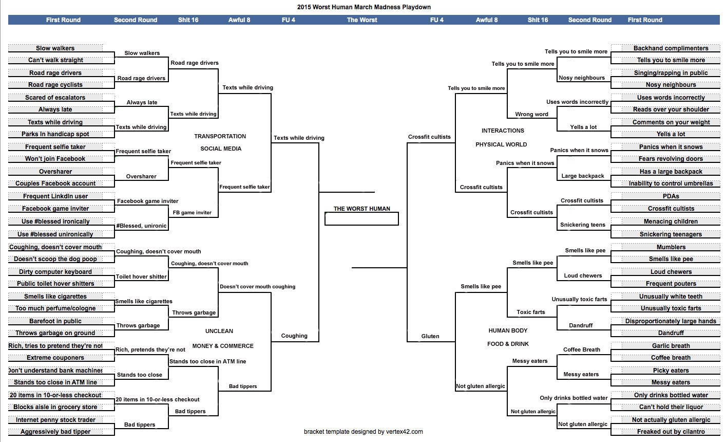 Click the image directly below to see the full Worst Human bracket results.